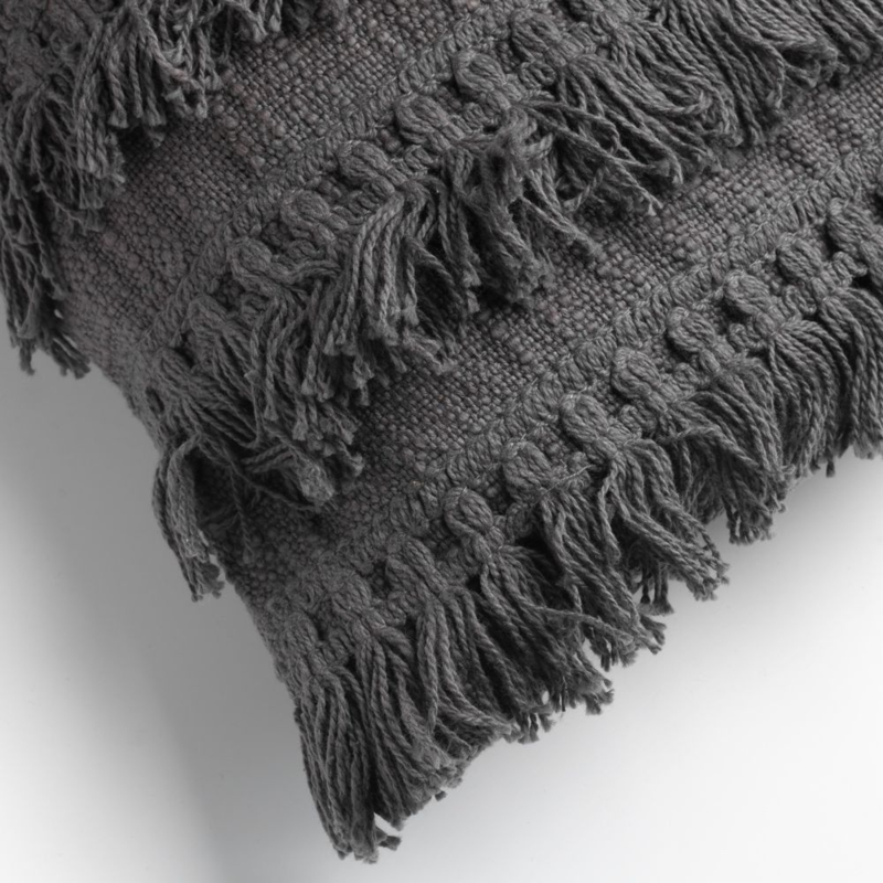 FARA - Sierkussen 40x60 cm - 100% katoen - met franjes - Charcoal Gray - antraciet