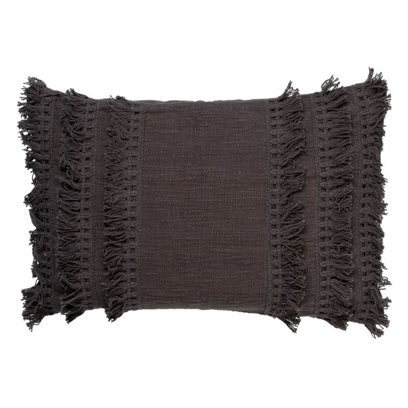 FARA - Sierkussen 40x60 cm - 100% katoen - met franjes - Charcoal Gray - antraciet